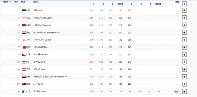 لاشا تالاخادزه وزنه‌بردار مطرح گرجستان، لالایان از ارمنستان و گور میناسیان از بحرین برای ثبت بالاترین رکورد یک‌ضرب رقابت داشتند.