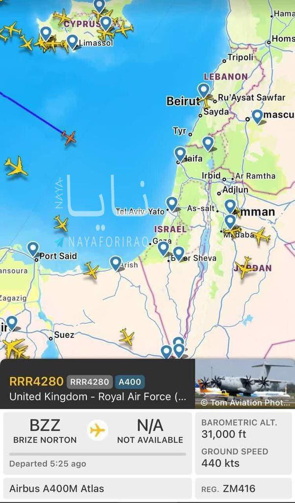 رسانه عراقی «نایا» با انتشار تصویری از نقشه هواگردهای ورودی به حریم هوایی فلسطین اشغالی، نوشت: «تاکنون حجم زیادی از سلاحهای غربی، از جمله ۱۷ هواپیمای ترابری سنگین نظامی، به رژیم صهیونیستی ارسال شده است».