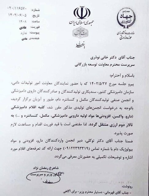 به گزارش اقتصاد آنلاین، مشاور وزیر جهادکشاورزی در نامهای خطاب به سرپرست معاونت توسعه بازرگانی این وزارتخانه از حذف ارز ۲۸۵۰۰ تومانی محصولات دامپزشکی خبر داد.