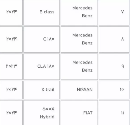 خودروهای مشمول جانبازارن معزز ۷۰ درصد ( ویژه ) به شرح ذیل است: