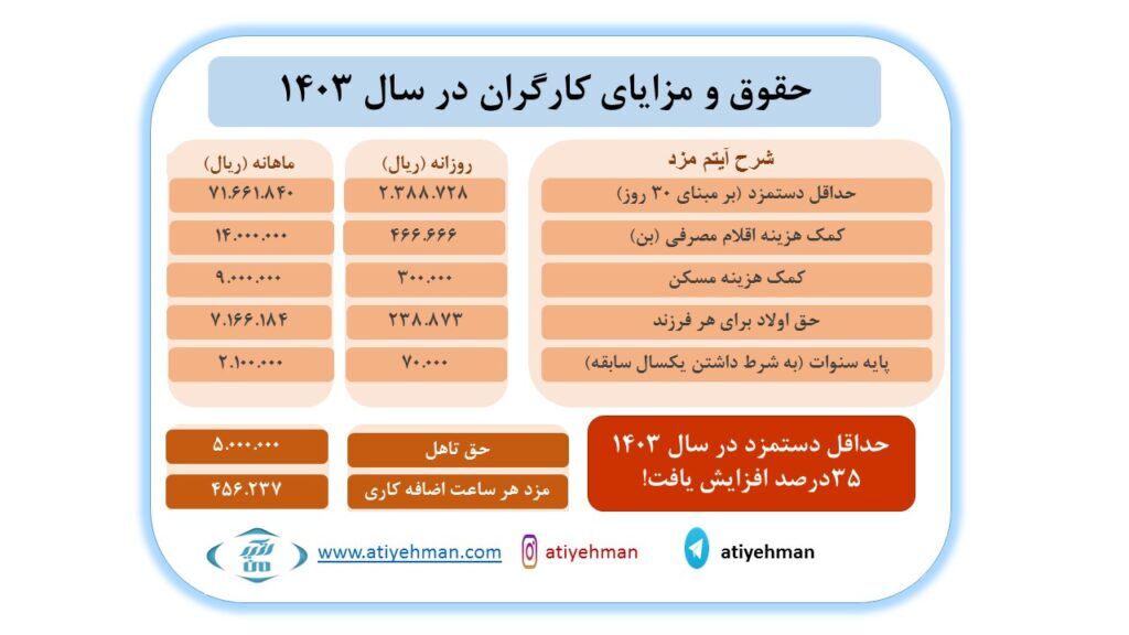 محاسبه دستمزد و حقوق کارگران در سال ۱۴۰۳