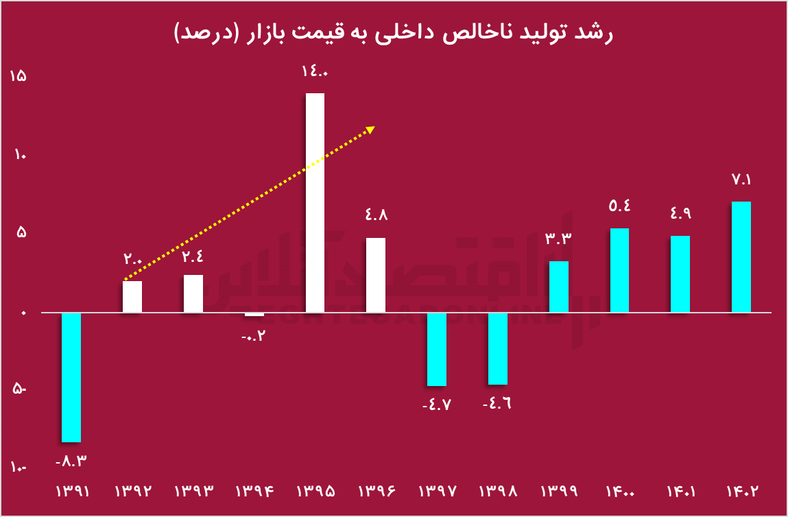 رشد تولید ناخالص داخلی از منفی ۸ درصد در سال ۹۱ در سال نخست ریاست طیب‌نیا به مثبت دو درصد رسید و پس از آن نیز این رشد ادامه‌دار بود؛ به طوری که در سال ۹۵ شاهد رشد بی‌سابقه ۱۴ درصدی تولید ناخالص داخلی بودیم. این عدد پس از آن هیچ گاه به بیش از ۵ درصد در دهه ۹۰ نرسید. طیب‌نیا وزارت خود را با رشد قریب به ۵ درصدی تولید ناخالص داخلی تحویل داد؛ اما پس از او در سال‌های ۹۷ و ۹۸ این شاخص رشد منفی ۴ درصدی را به ثبت رسانید.